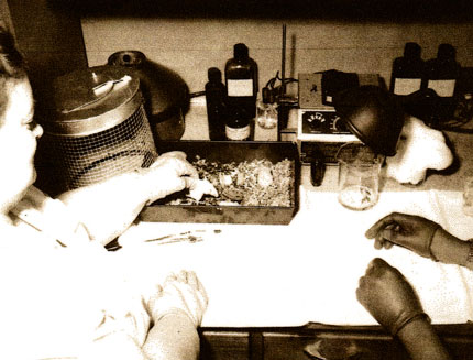 Rene Caisse injects mice for experimentation at the Brusch Medical Centre, Cambridge MA